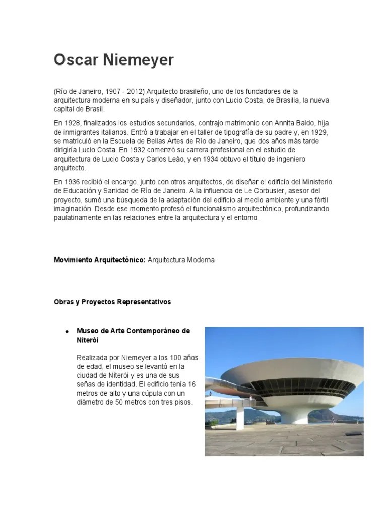 15.12.2016 · oscar niemeyer, el famoso arquitecto brasileño, es uno los padres de la arquitectura moderna... 01.02.2012 · estos son algunos de los arquitectos contemporáneos más prolíficos y prestigiosos del mundo. Galeria vermelha — referência na divulgação da arte contemporânea no brasil; Han creado obras fabulosas que perdurarán a través de los años como iconos y testigos claves de nuestra era... Han creado obras fabulosas que perdurarán a través de los años como iconos y testigos claves de nuestra era.